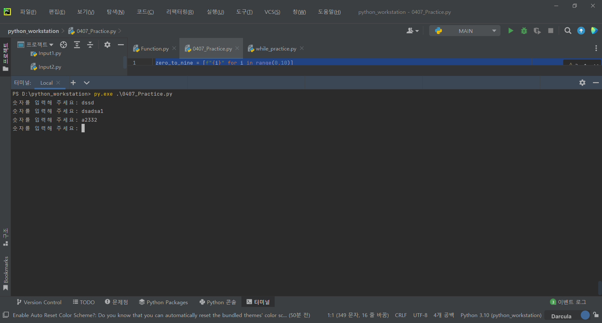while 실습 코드