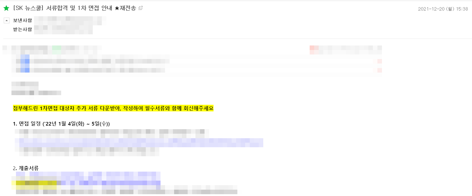 1차 면접은 22년 1월 4일(화) ~ 5일(수) 이틀간 진행되었습니다.