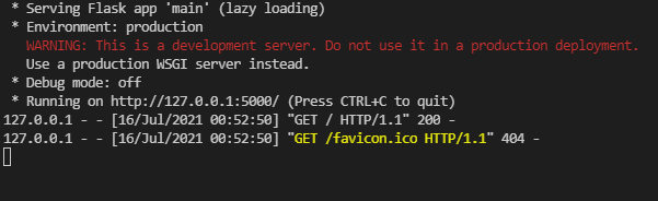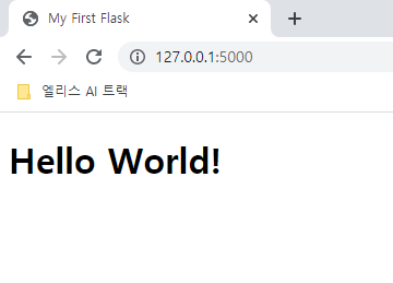 결과로 출력된 문장에서 Running on http://127.0.0.1:5000/ 이라는 문구가 보인다.