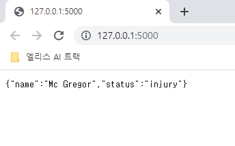 다음은 jsonify 모듈을 이용해 html 페이지를 돌려받는 것이 아니라