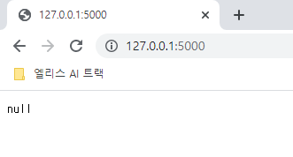 - 먼저 flask를 import 해준다. (flask는 "python -m pip install flask"를 cmd에 입력해 미리 다운 받아준다.)