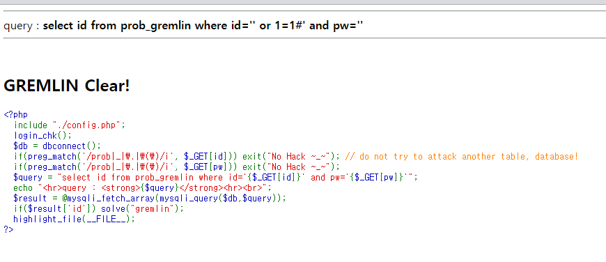 https://los.rubiya.kr/chall/gremlin_280c5552de8b681110e9287421b834fd.php?id=%27+or+1%3D1%23