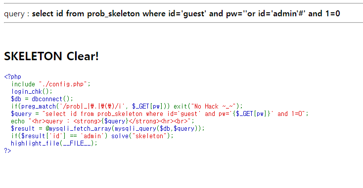 https://los.rubiya.kr/chall/skeleton_a857a5ab24431d6fb4a00577dac0f39c.php?pw=%27or++id%3D%27admin%27%23