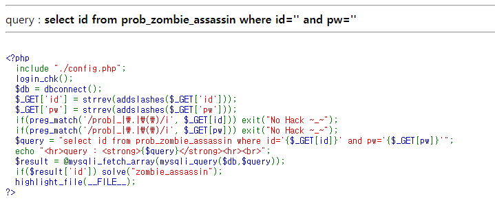 - 위에서 설명을 빼먹었는데 갑자기 나온 역슬래시는 addslashes로 인하여 입력값 뒤에 \ 문자열이 추가되게 만드는 함수다.
