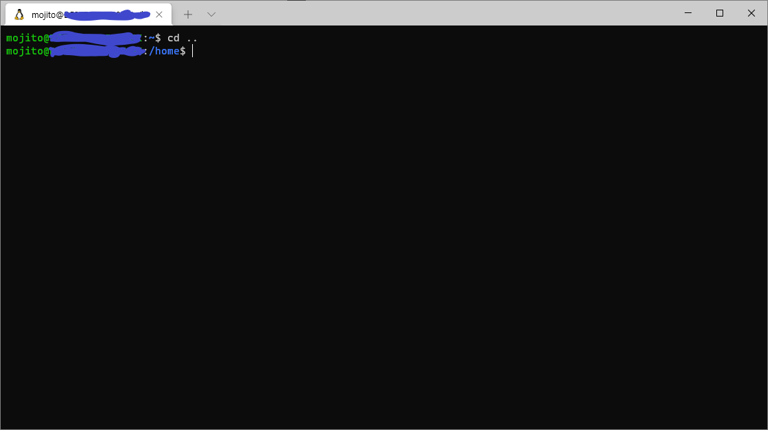 mojito에 하위 디렉토리가 없기에 상위 디렉토리인 home으로 이동하기 위해 cd .. 입력하니 저렇게 바뀌었다.