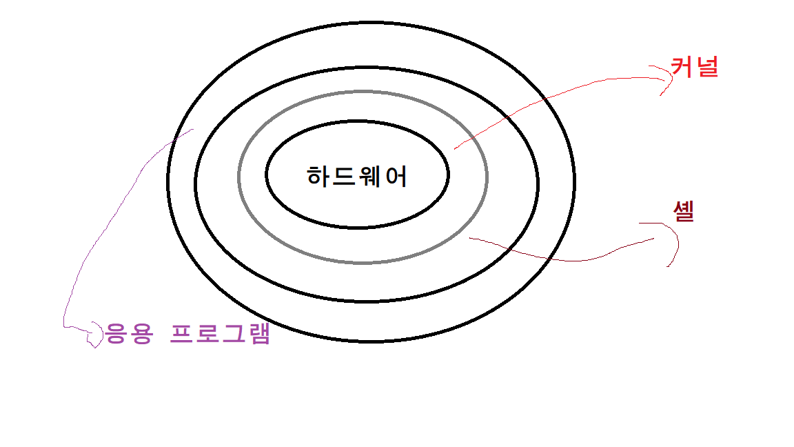 리눅스의 구조는 대강 이렇다(내가 그려따. 미안하다.)