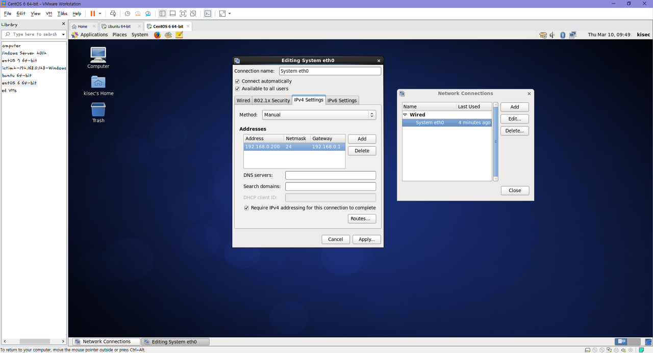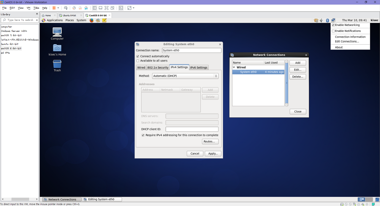 Centos 6 GUI 환경에서 Static Ip 주소 설정하기