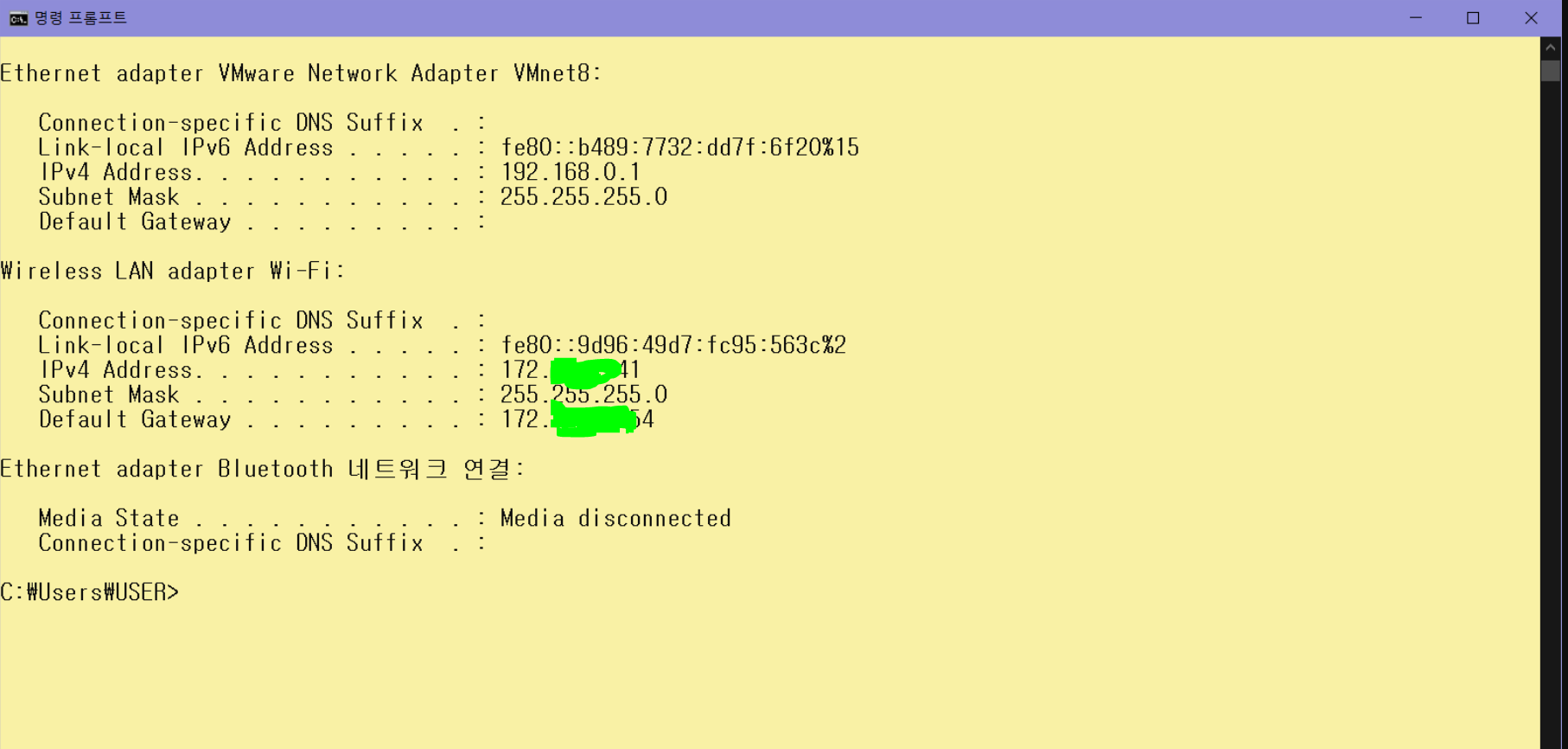 관리자 컴퓨터 ip 확인 → 172.**.*.41